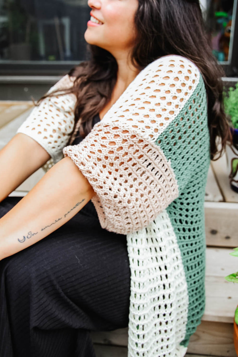 Stay cool and chic this summer with the July 13th Cardigan! This airy knit pattern is perfect for warm weather, making it a must-knit for your seasonal wardrobe. Get ready to create your new favourite summer layer!