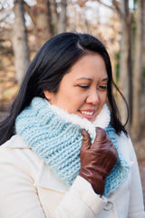 Cozy up in the lap of luxury with this chunky, fur-lined cowl. Super bulky ribbing oozes texture on the outside, and the faux fur inner layer wraps your neck with the softest comfort. Add a button to make this open cowl adjustable, so you can wrap it as tightly or loosely as you’d like.