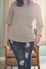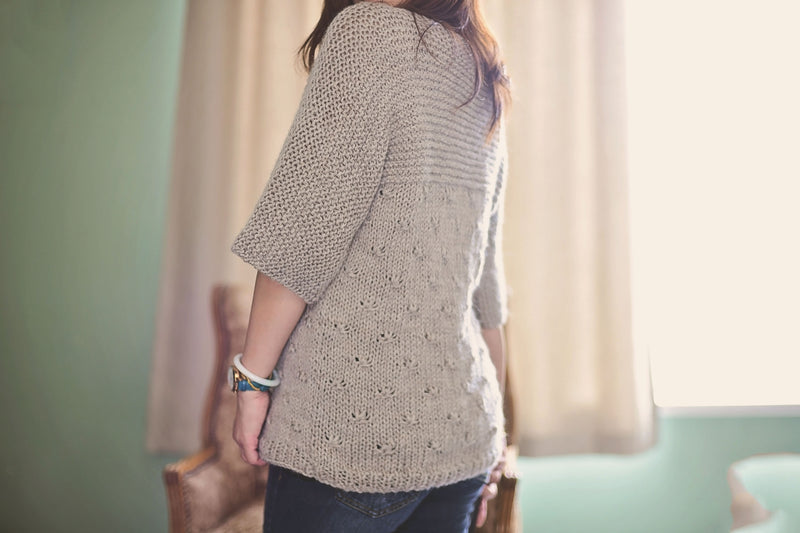 The Knotted Puller Sweater has a classic fit, perfect for cool summer nights! Knitted in one piece, with minimal sewing, it is a great first sweater pattern.