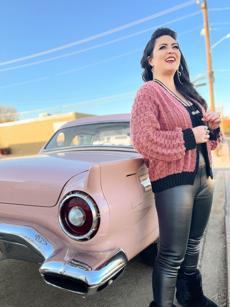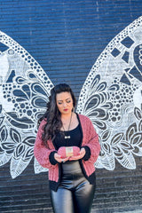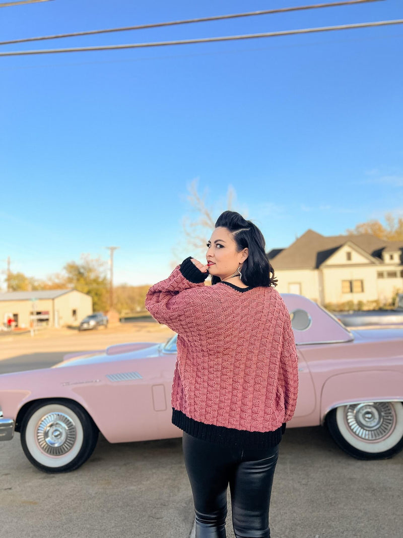The Live Your Dream Bomber is inspired by Barbie. Basic knit stitches are used to achieve the textured zig-zag look and Lion Brand’s Wool-ease Recycled yarn really helps to highlight the stitch definition. You can confidently live your cozy or glam dreams in this bomber.