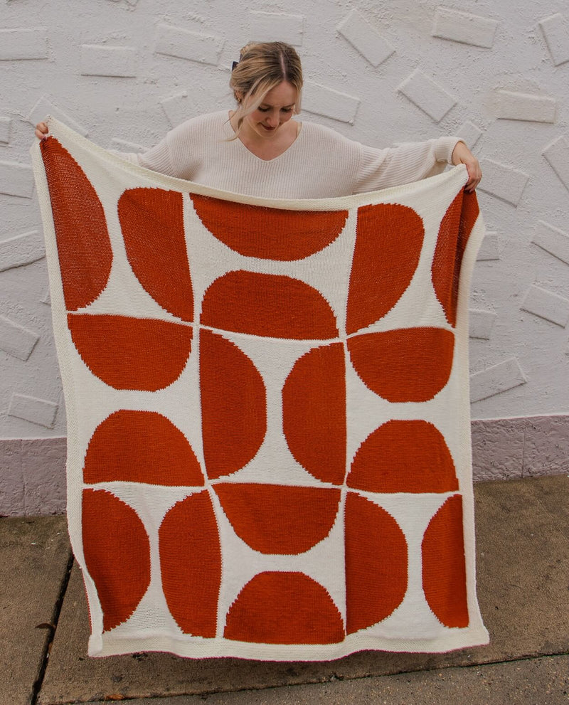 Inspired by geometric mid-century wall art, this MCM (mid-century modern) throw blanket will keep you engaged from start-to-finish since nearly every row involves changing colors. Perfect for any knitter looking for an easy project that requires a little bit of counting and a lot of color!