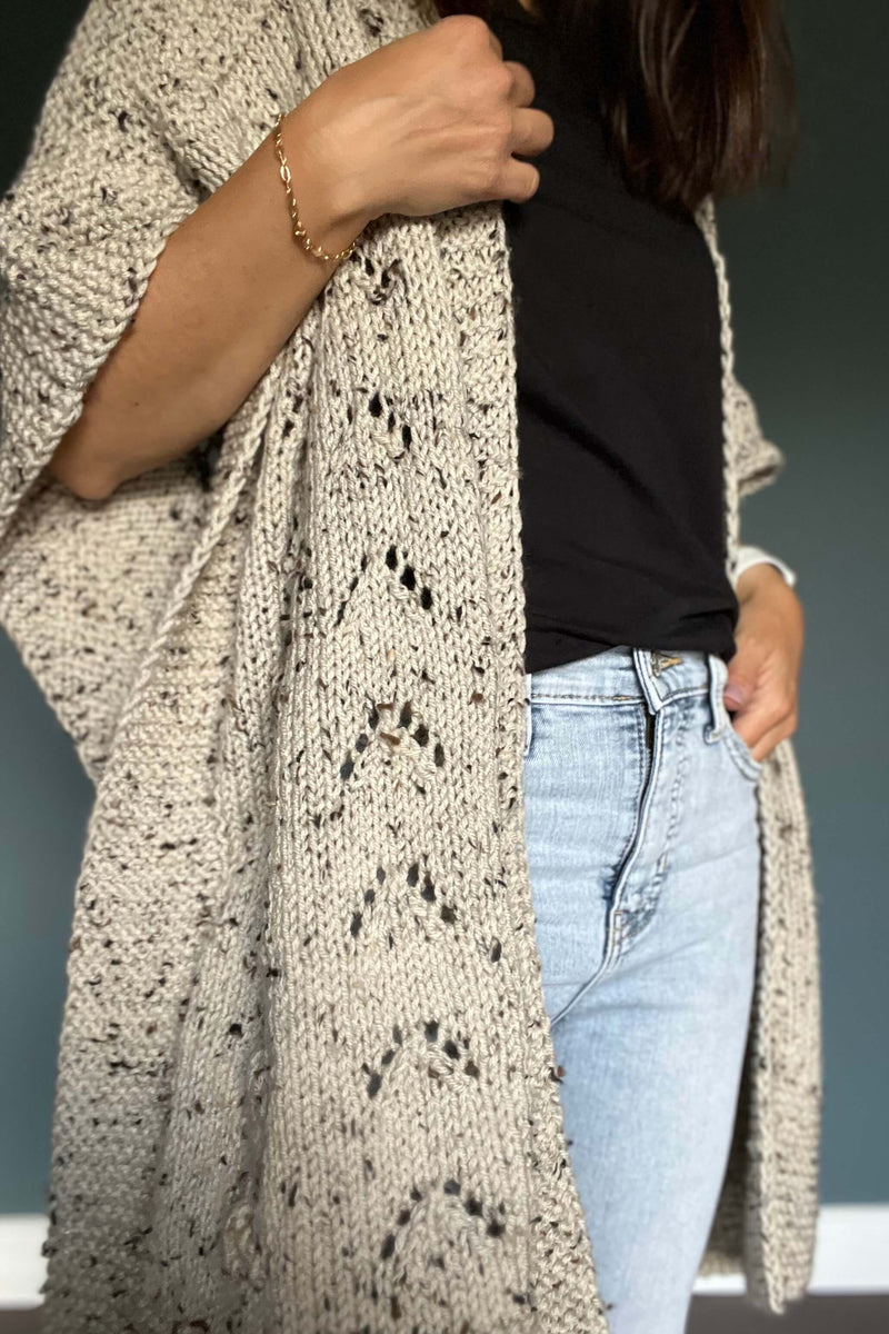 Update your fall wardrobe with this airy, simple lace ruana knit in durable Basic Stitch Anti Pilling yarn. The Miriam Ruana is a very versatile piece that is the quintessential easy-to-wear layering garment. Featuring an easy to knit eyelet lace pattern and beautiful edging, you will love adding this to your collection.