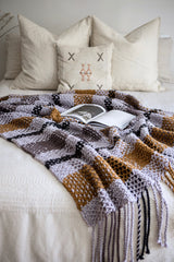 The Moonstone Plaid Blanket transforms basic stripes into dramatic plaid with a simple weaving technique. This elegant and cozy throw requires only beginner level skills and can be worked up in any color combo to create a beautiful, special fabric. This afghan adds warmth and intrigue to any room and is a true heirloom piece.