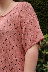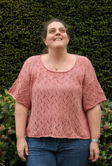 This summer knit top is all about laid-back style, featuring a beautiful scooped neckline that looks great on everyone. The i-cord edging at the bottom, sleeves, and neckline adds a neat touch without being too fussy. A unique feature is the folded sections at the neckline and sleeves, which are sewn down to create subtle, elegant details. With sizes ranging from XS to 5XL, this top is made for everybody. Plus, it's an easy-level project, so don’t let the i-cords scare you off—they’re much simpler than you'd think and make the top look really polished.