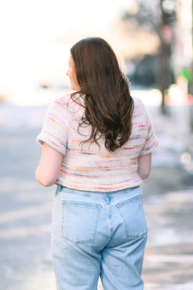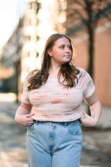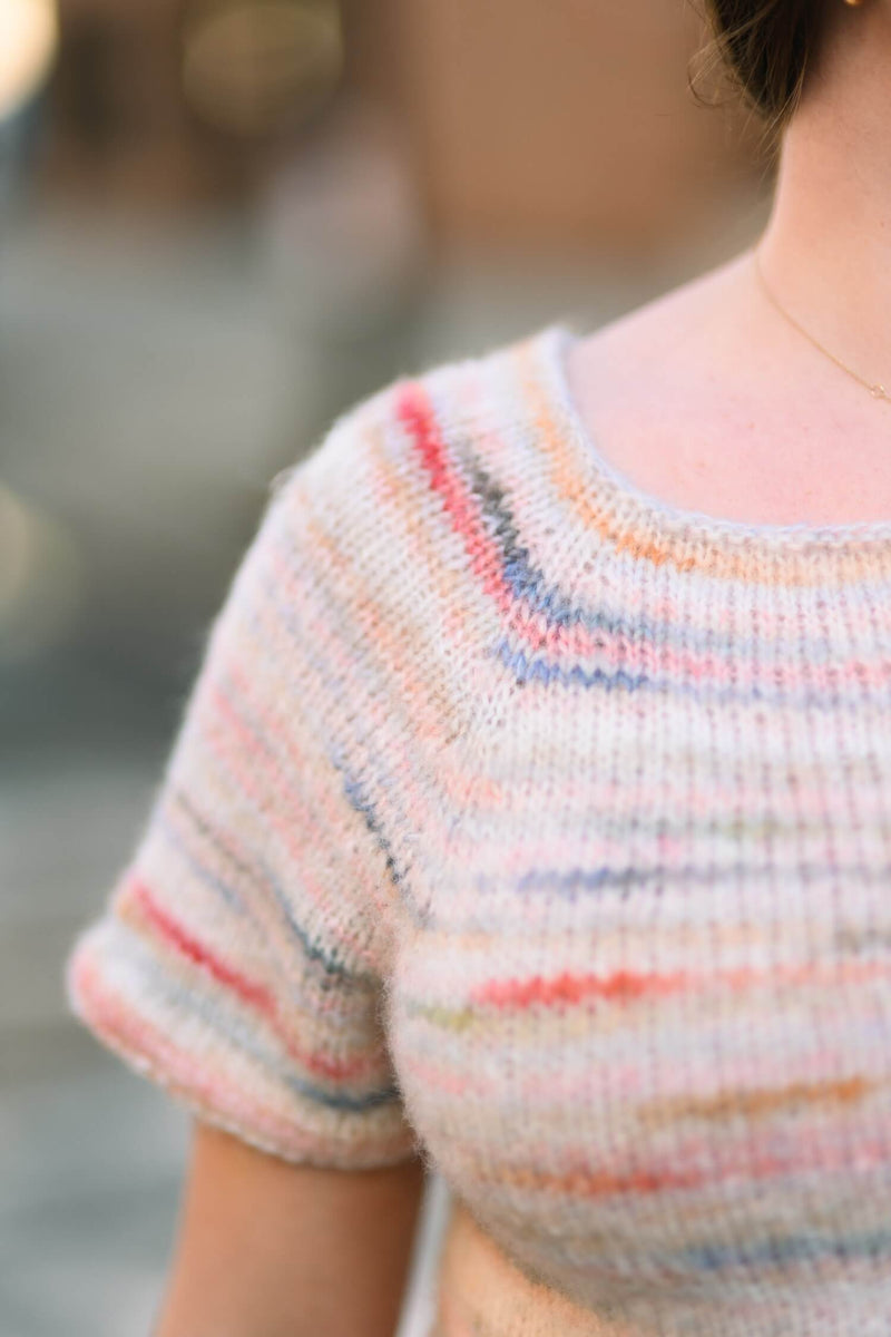 The Seasonless Raglan Top is an easy knit tee. Cropped for a modern fit, this top pairs well with jeans or with a flowy skirt and heels for a more polished look. Scarfie® Lite is a worsted weight yarn with a sophisticated and tonal blend of solid and heathered hues.