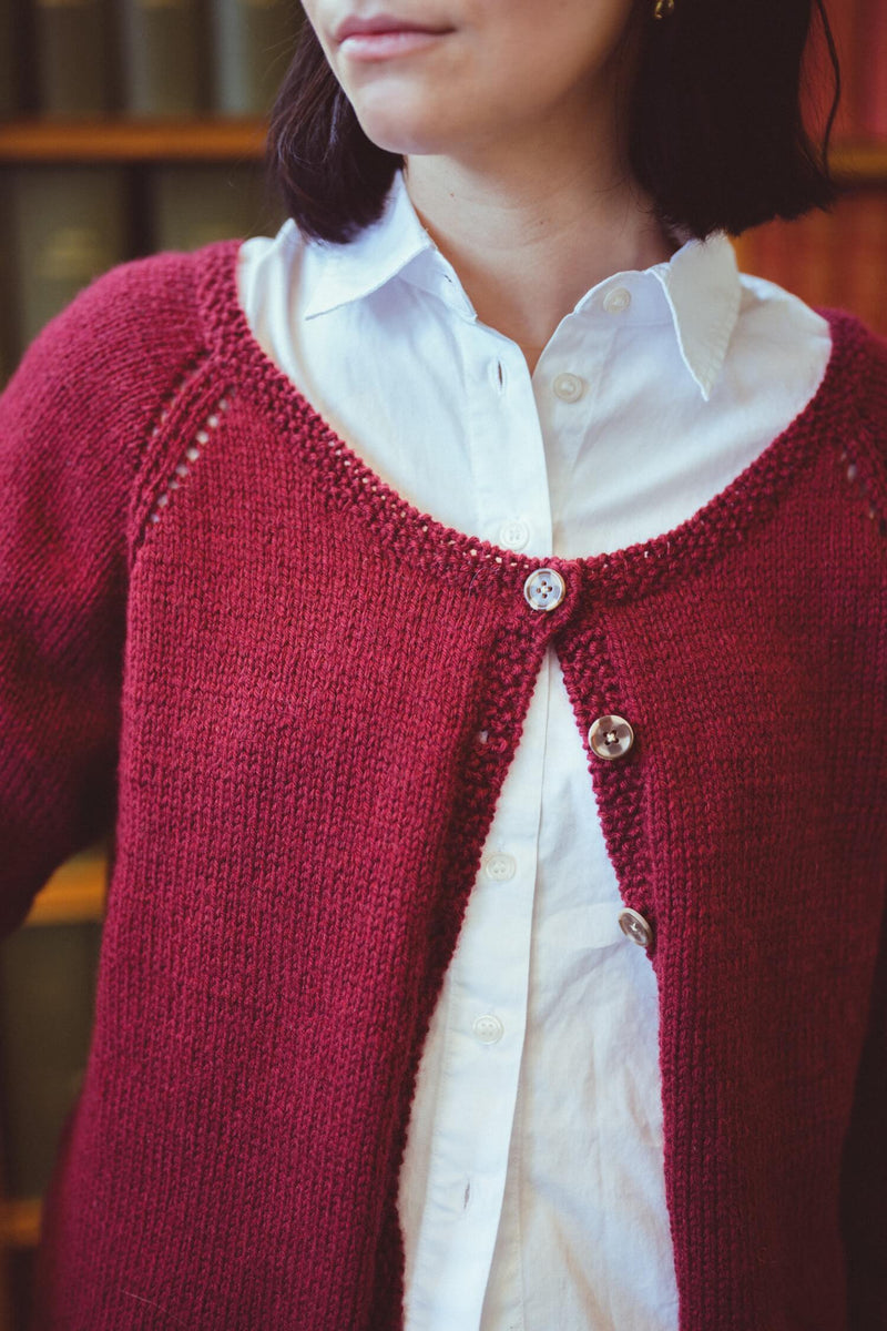 Create a polished and professional sweater for your wardrobe. The Somerset Ragland Cardigan is an easy knit pattern made with Wool-Ease® DK yarn.