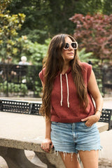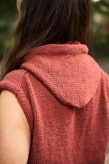 The Spring League Sleeveless Hoodie is a sporty shell style tank that evokes memories of spring athletics and a general sense of nostalgia. The classic drawstring hood, v-insert neck triangle, and rolled sleeve hems give personality and add to the classic appeal of this sweatshirt-inspired wardrobe staple. Meant to be well-loved and well-worn, this piece has the perfect broken-in relaxed fit that allows for chic comfort and wearable ease.
