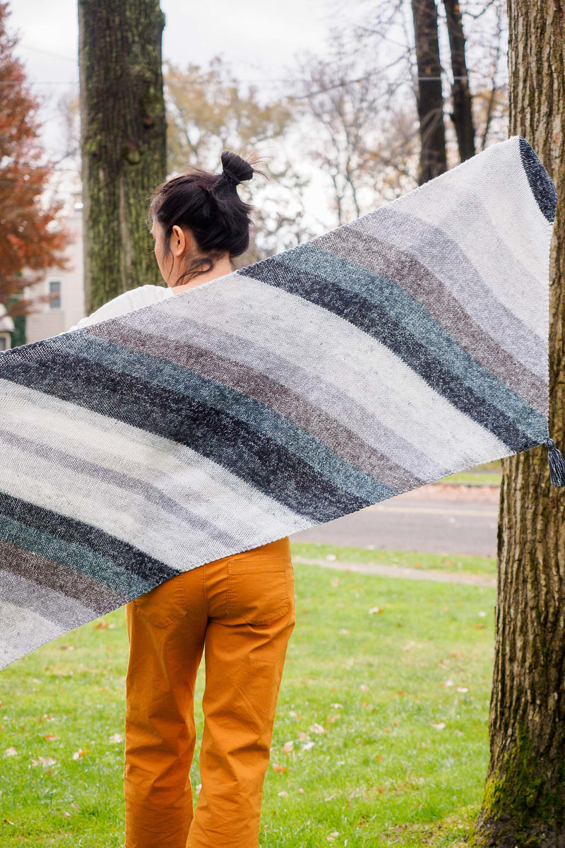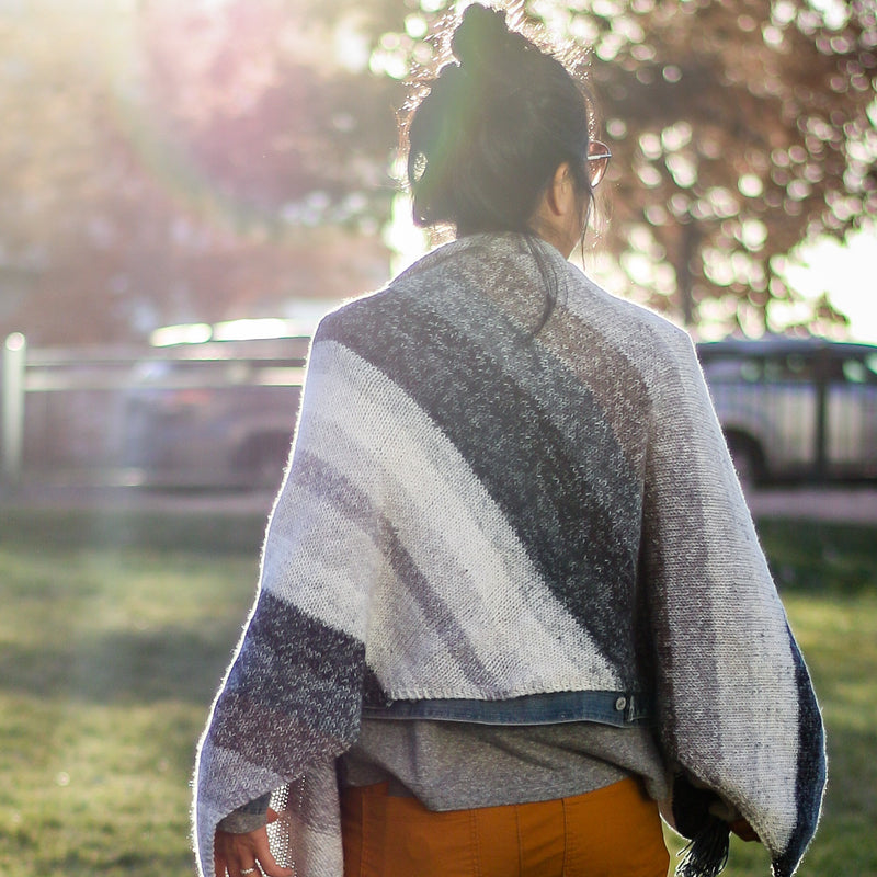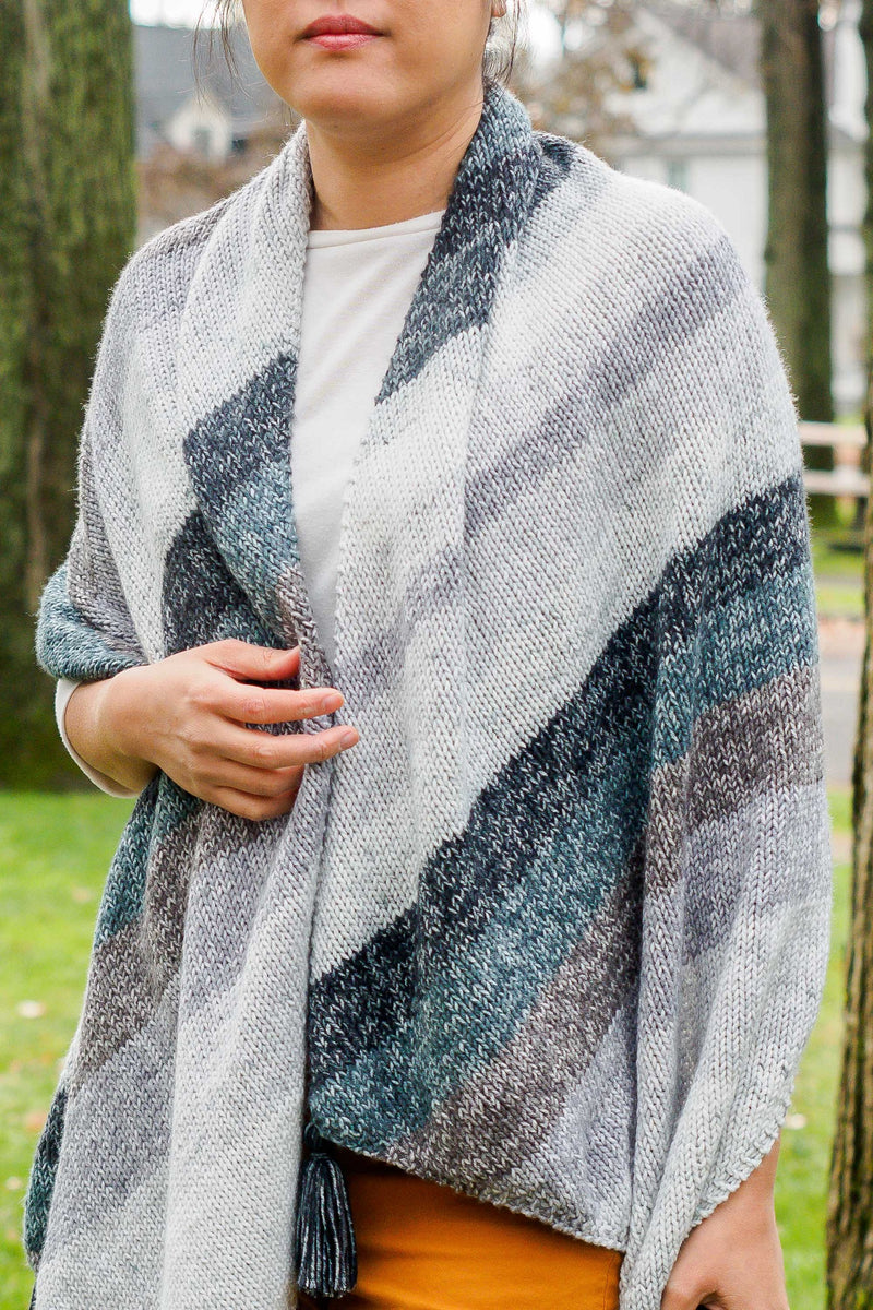 Let the colors transitions of Lion Brand Mandala Ombre shine in this simple yet stunning knit bias wrap. Worked from corner to corner, the Strata Wrap uses basic knit stitches, increases, and decreases to create an eye-catching rectangle, long enough to wrap around your neck as a cozy scarf.