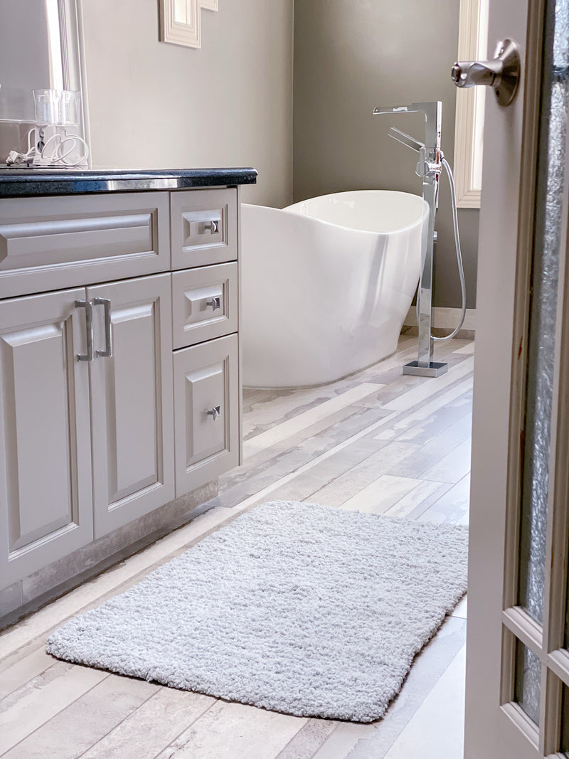Why buy a bathmat when you can custom make your own!? This bathmat is classic garter stitch pattern, but it’s the yarn that really shines. With a fluffy and fleece like texture, it really does feel like you’re stepping on clouds, and gives a store-bought look and appeal. You’ll have this whipped up in no time!