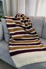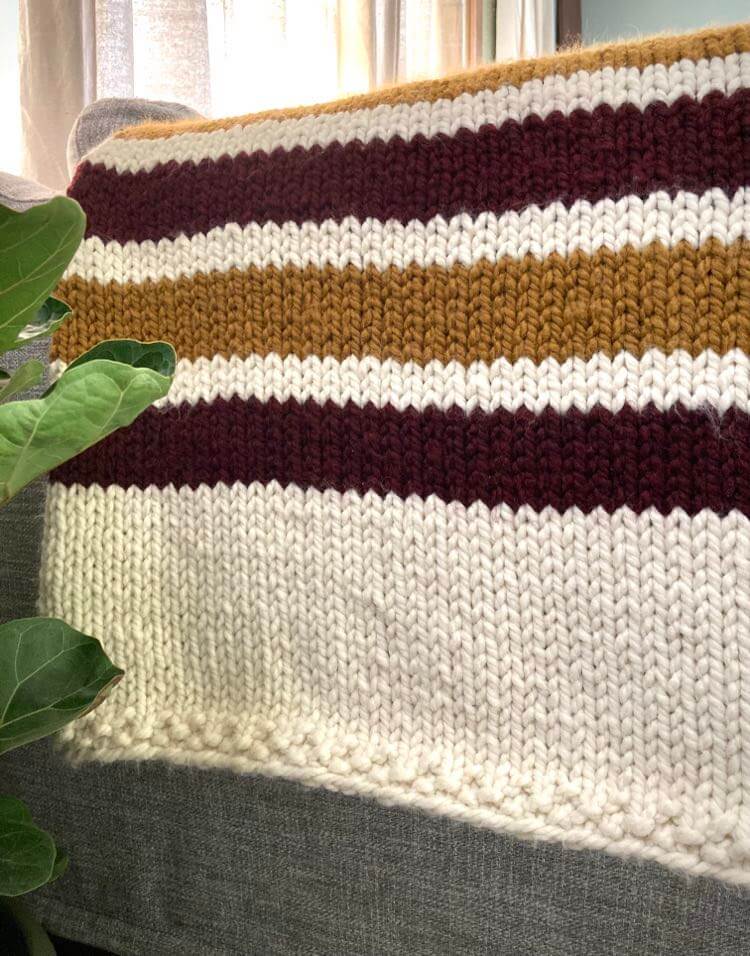 The Camper Blanket was inspired by my Grandparents' camper that we used every Summer to take a week long camping trip. This blanket reminds me of innocent Summer nights, bonfires, night games, and card games with friends. Knit your own super easy, beginner friendly blanket in colors that bring you fond memories.