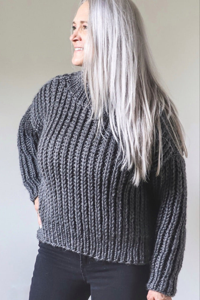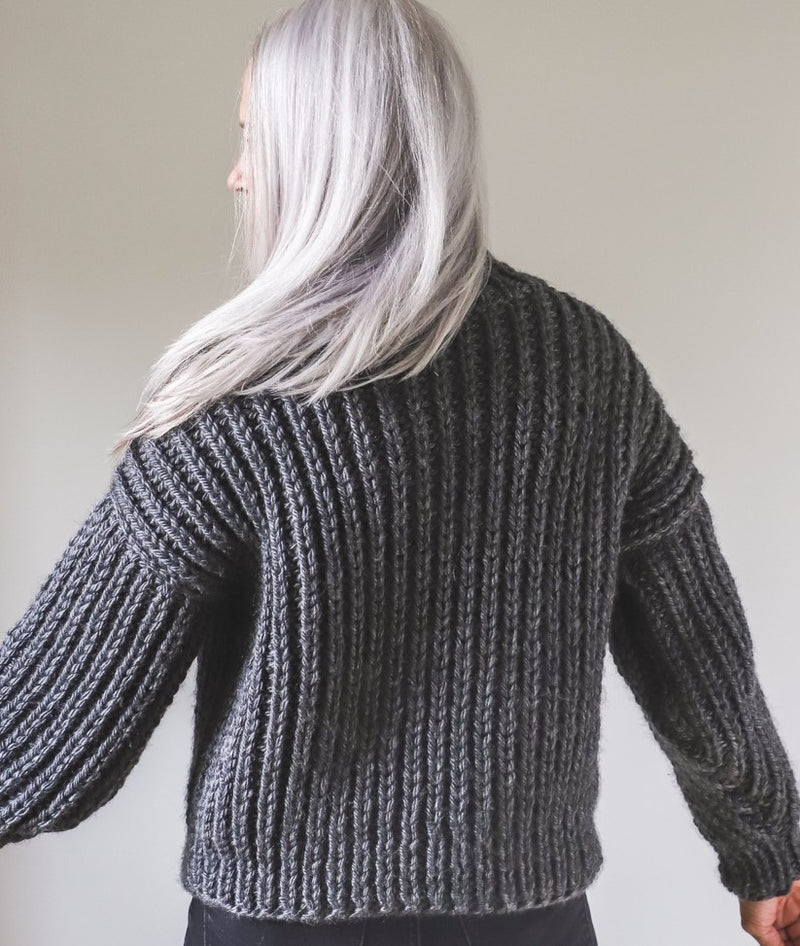 Knit with super bulky yarn, this oversized pullover knits up reasonably quick. This pattern is worked flat using circular needles to accommodate a large number of stitches. It’s worked using the Half Fisherman’s Rib stitch, giving it a warm yet luxurious look.