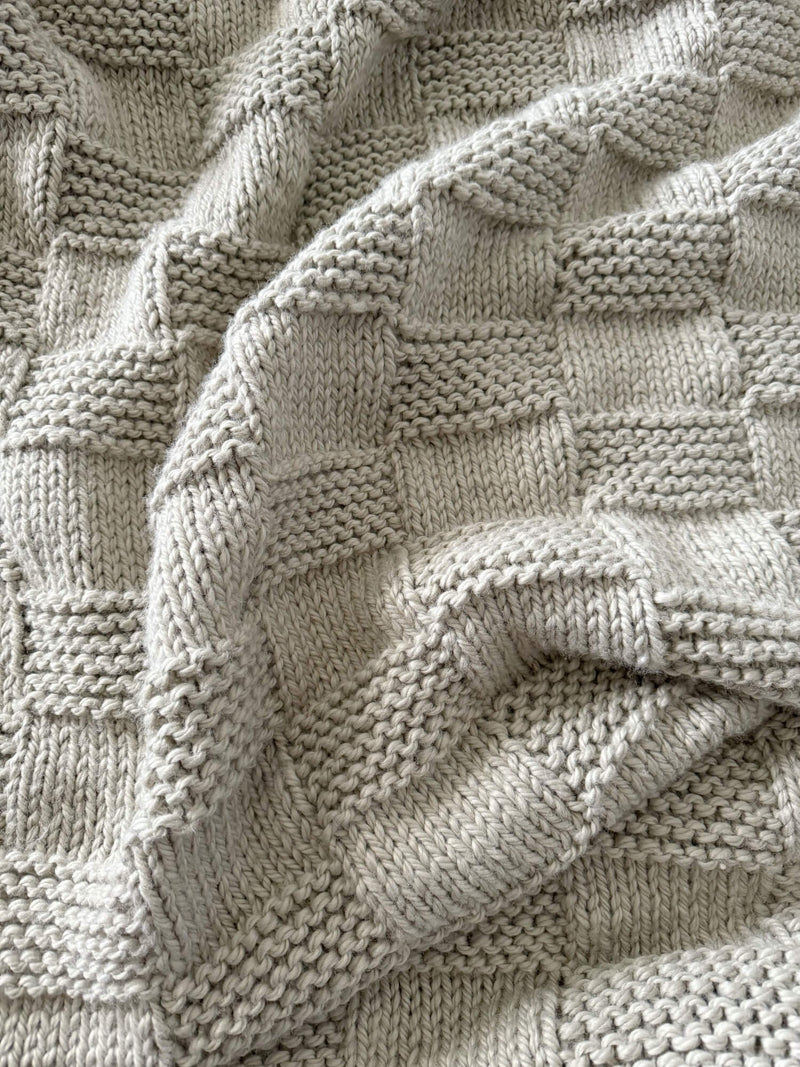 This cozy throw blanket is made with super bulky yarn, making it a quick and satisfying project for knitters of all levels. The pattern features a textured checkered stitch that adds depth and visual interest while keeping the blanket soft and plush. Perfect for draping over your couch or bed, this chunky knit blanket will bring warmth and style to any space.
