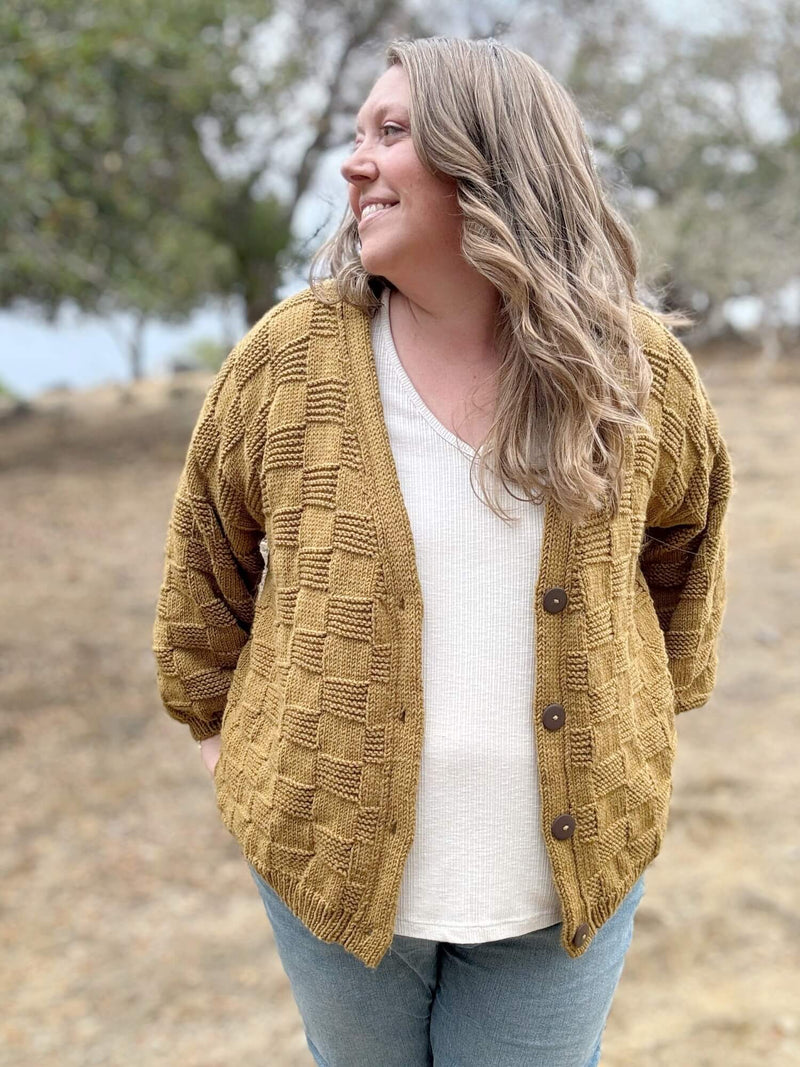 The Quinn Cardigan is a cozy, textured knit featuring a classic checkered stitch pattern that adds visual depth and warmth. Its button-up front provides a versatile look, making it easy to wear open or closed for various styles. Designed with a relaxed fit, this cardigan is perfect for layering on cooler days and brings a touch of timeless style to any wardrobe.