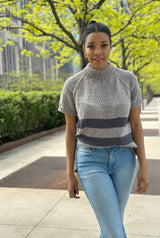 The Sidewalk Sweater is a top-down raglan with a relaxed fit and bold stripes that make walks feel like a runway. Knit in LBY Color Theory, this medium weight acrylic yarn offers fiber structure and softness. Short sleeves and mock neck give just enough warmth for breezy mornings or layering up. The modern neutral palette adds timeless style to a simple silhouette. The Sidewalk Sweater is the kind of piece that moves with you — like fun fiber on the go.