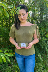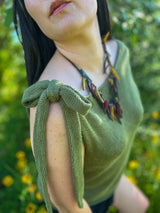 The Tie the Knot Tee draws your feminine energy out with its one-shoulder bow feature while maintaining ideal comfort when knit in slinky tencel lyocell yarn. It’s intentionally designed in the stockinette stitch to create a more relaxed making process, as well as, add to its wearability and drape. Overall, this tee is perfect for those summer brunches with the girls or a romantic date night.