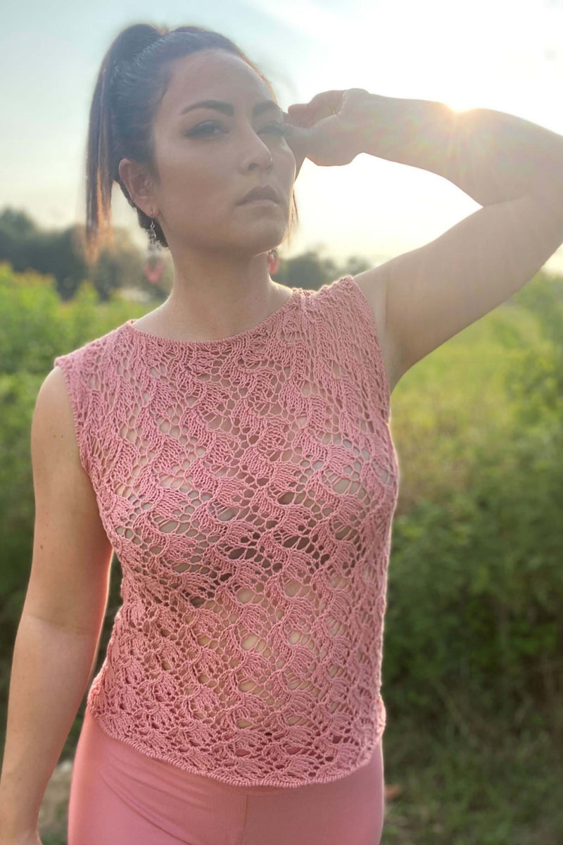 The Traveling Vines Tank is a delicate but durable garment designed with airy lacework in cotton yarn that is perfect for the heat of summer. It has a classic fit with no shaping. The twelve-row/round repeated lacework is easily attainable for the ambitious maker.