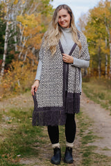 Finished scarf measures approximately 14.5” (37 cm) in width and 75” (191 cm) in length, not including fringe.