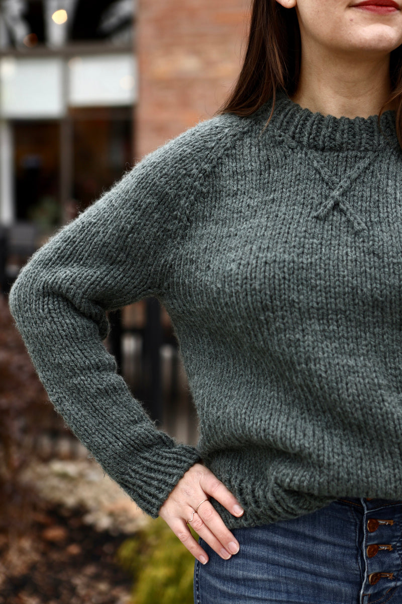 The Winter League Pullover is a crewneck raglan sweater that evokes memories of chilly sports games, cozy winter evenings, and a general sense of nostalgia. The doubled ribbed neckband, v-insert neck triangle, and side slit details give personality and add to the classic appeal of this sweatshirt-inspired wardrobe staple. Meant to be well-loved and well-worn, this sweater has the perfect broken-in relaxed fit and deep raglans that allow for chic comfort and wearable ease.