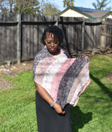 This wrap was designed with beautiful, strong, and fierce women in mind. Thedelicate lacey design is named Xiomara (pronounced See-oh-mar-rah) which has Spanish-Germanic roots meaning ‘ready for battle’ and Arabic roots meaning ‘most beautiful in the world’. This wrap is the personification of strength and beauty one could work up quickly and wrap themselves in.