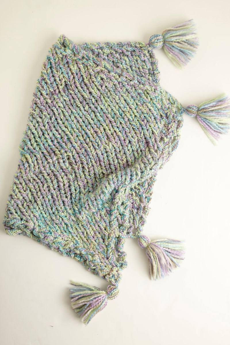 4 sts + 4 rows = 4 inches [10 cm] in Stockinette st (k on RS, p on WS) using 4 strands of yarn held together.