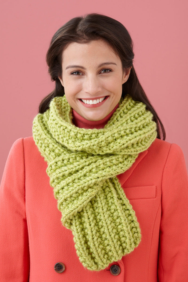 The Brisbane Scarf Pattern - Version 4 is a knit scarf pattern made with super bulky weight yarn that has a skill level of easy.