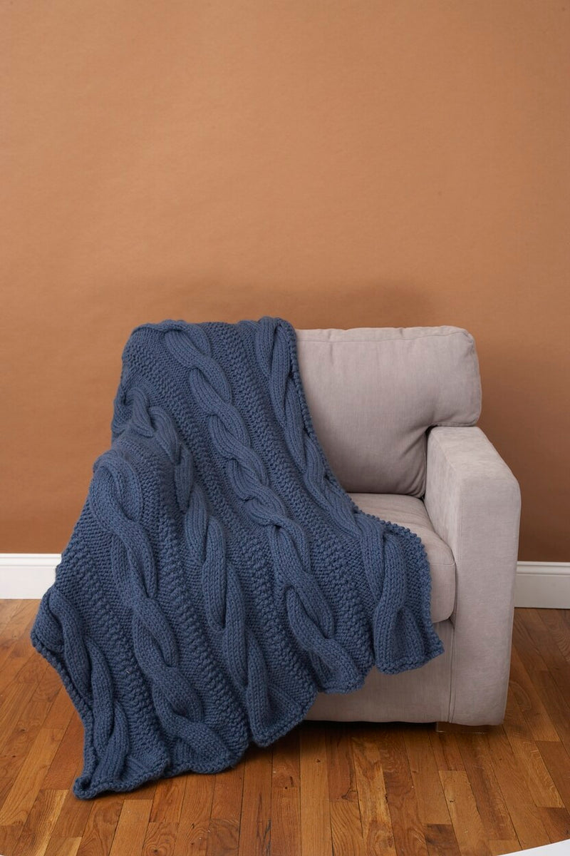 The Cable Comfort Throw - Version 3 is a knit afghan pattern made with super bulky weight yarn that has a skill level of easy.