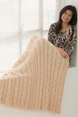 22 rows = 4 in. (10 cm) in cable patterns. 26 sts = 4.5 in. (11.5 cm) in Dancing Cable. 13 sts = 2.5 in. (6 cm) in Plait Cable. 18 sts = 3.5 in. (8 cm) in Elongated Chain Cable.