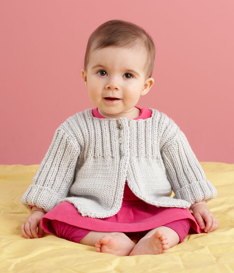 0-12 months (2 years, 3 years, 4-6 years) Finished Chest 22 (25, 26 1/2, 29 1/2) in. (56 (63.5, 67.5, 75) cm), buttoned Finished Length 10 (11, 12 1/2, 14) in. (25.5 (28, 32, 35.5) cm)