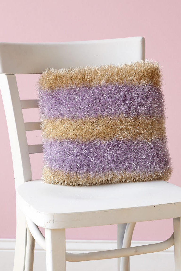 The Glitter Stripes Pillow Pattern is a knit pillow pattern that has a skill level of intermediate.