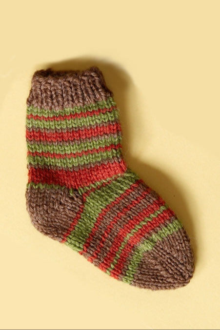 The Knit Child's Striped Socks Pattern - Version 5 is a knit socks pattern made with medium weight yarn that has a skill level of intermediate.