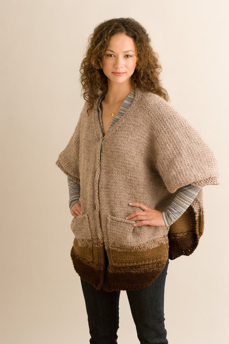The Pleasantville Poncho is a knit poncho pattern made with medium weight yarn that has a skill level of intermediate.