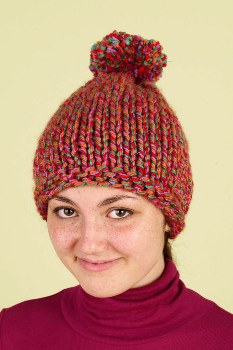 The Radiant Hat Pattern - Version 2 is a knit hat pattern made with super bulky weight yarn that has a skill level of easy.