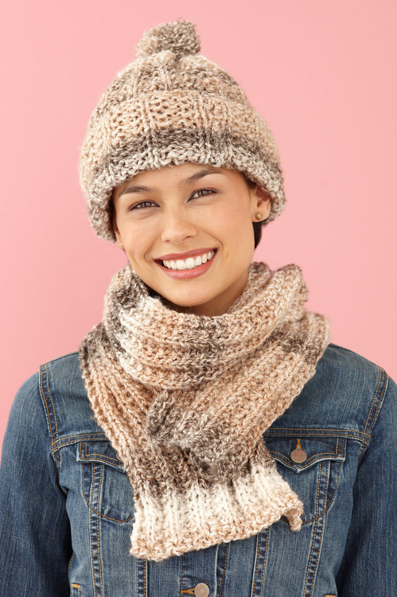 Rustic Ribbed Hat and Scarf Pattern (Knit) - Version 9