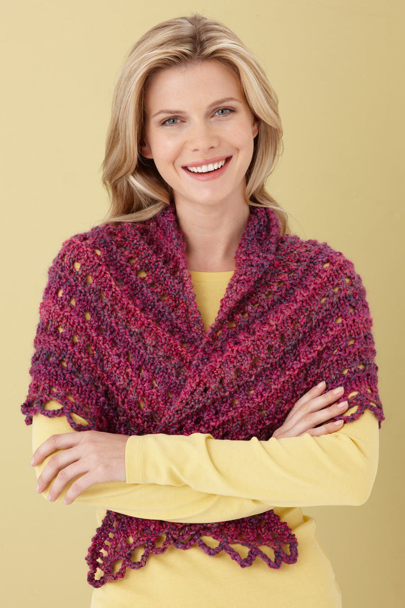 The Splendid Triangle Shawl - Version 3 is a knit shawl pattern made with bulky weight yarn that has a skill level of easy.