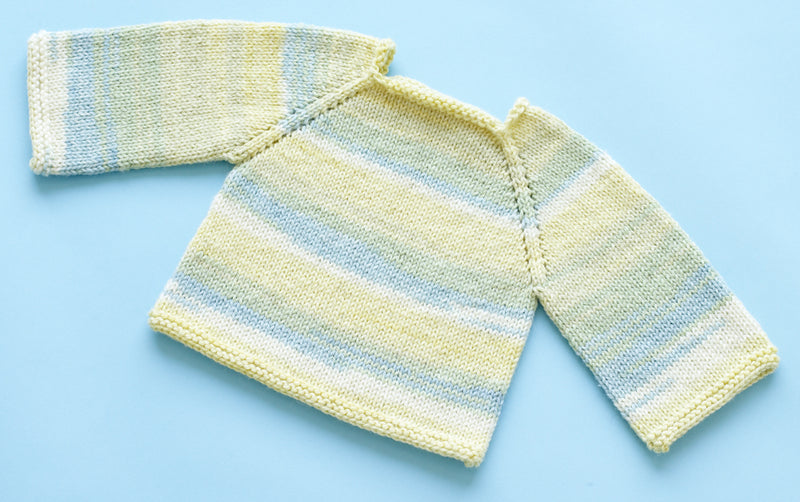 0-6 months (6-12 months, 12-18 months, 2 years, 3 years)Finished Chest 20 (21, 23, 24, 26) in. (51 (53.5, 58.5, 61, 66) cm)Finished Length 9 1/2 (11, 12, 13, 14) in. (24 (28, 30.5, 33, 35.5) cm)Note: Pattern is written for smallest size with changes fo