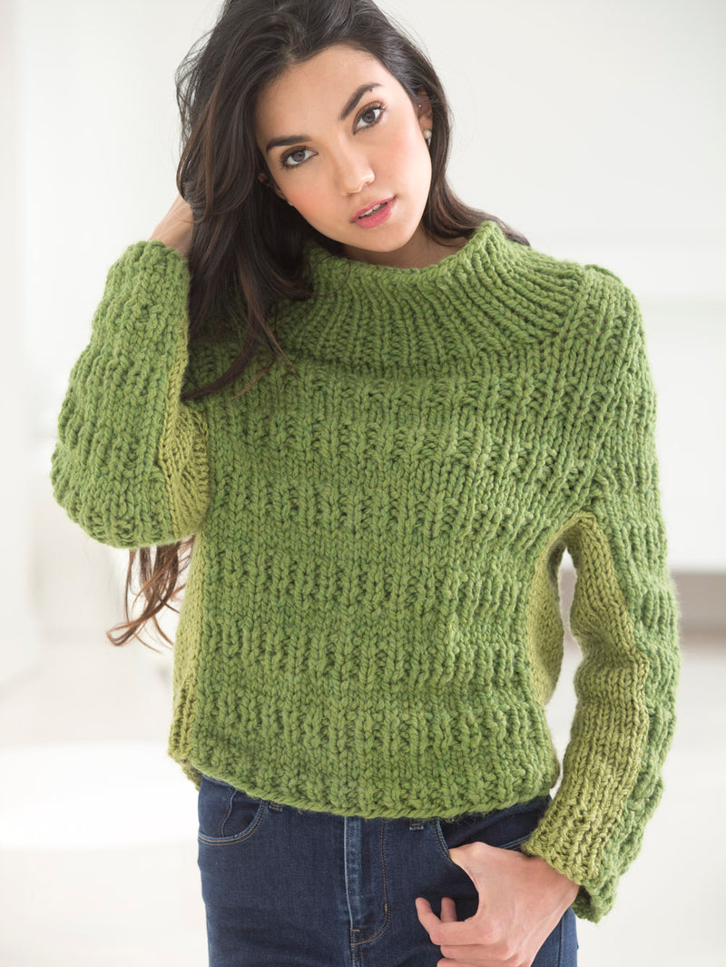The Thick And Thin Pullover is a knit sweater pattern made with medium weight yarn that has a skill level of intermediate.