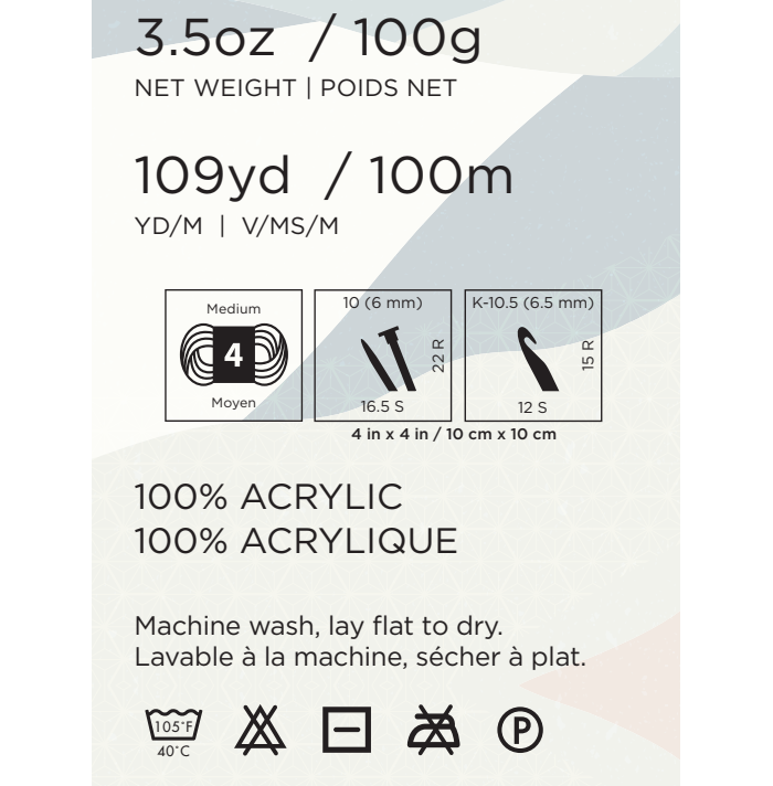 DISCONTINUED: This yarn is no longer available; however, we make this information available as a courtesy to those who still have the yarn.