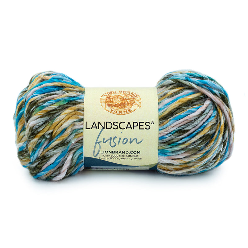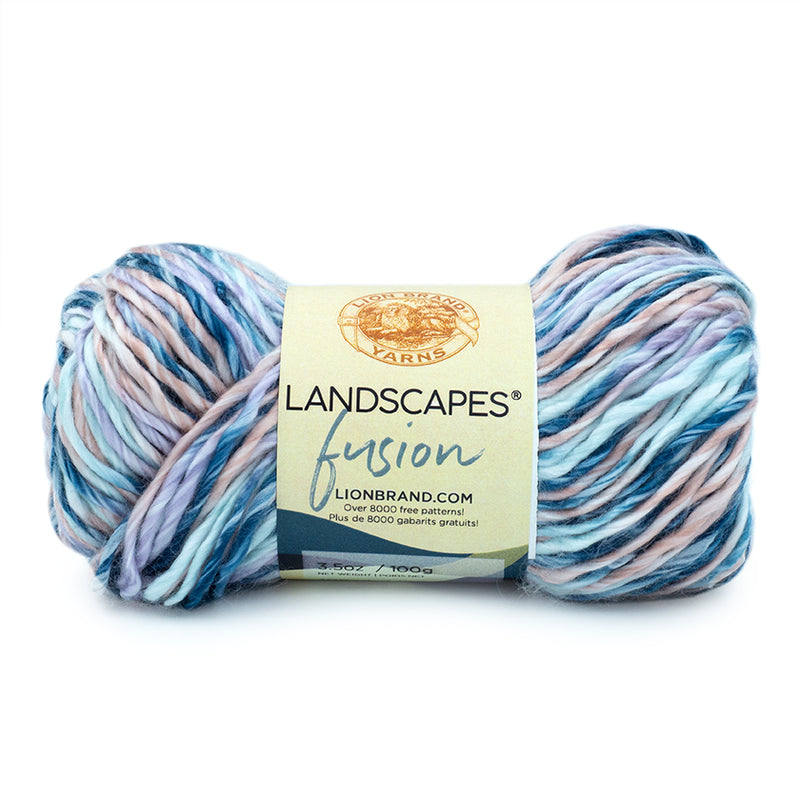 Landscapes® Fusion is a single ply, premium acrylic roving yarn with a satiny feel and slight sheen. The rich colors of this variegated yarn are blended, so they will not produce stripes, but rather an allover display of color. Create stunning garments and accessories that are true works of art in this yarn.