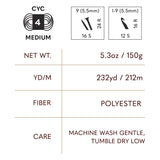 Landscapes Renewed is a medium-weight yarn made from 75% polyester and 25% recycled polyester, offering a beautiful sheen and durable finish. With 232 yards per skein, this yarn is perfect for textured sweaters, vibrant scarves, and artistic home décor. Whether you're knitting or crocheting, the smooth fibers in this yarn enhance stitch definition, creating modern and polished designs. Machine washable and dryable for sustainable, hassle-free crafting.