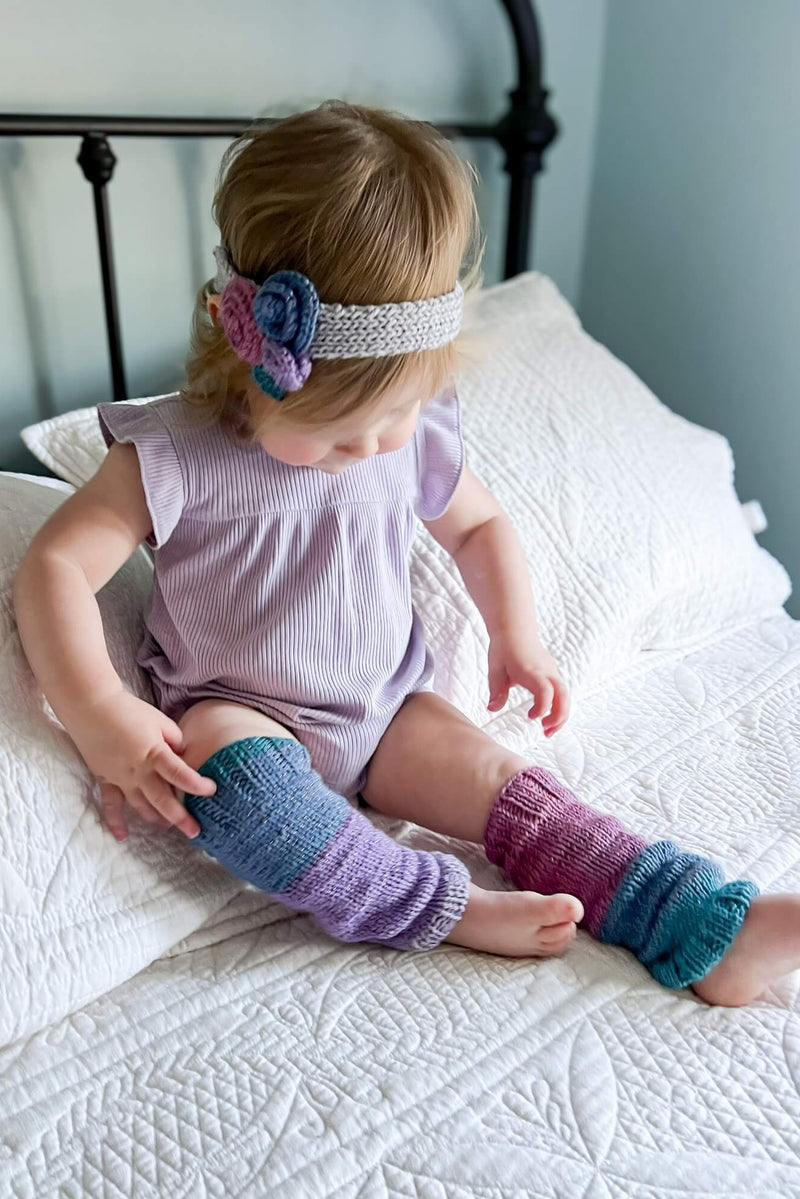 This knit legwarmers and headband set is easy to make for a cozy and stylish addition to a child's wardrobe. The sparkle in the Mandala Sparkle yarn adds a bit of whimsy and delight, making the accessories extra special. They can be worn as a matching set or individually, adding a pop of color and sparkle to any outfit.