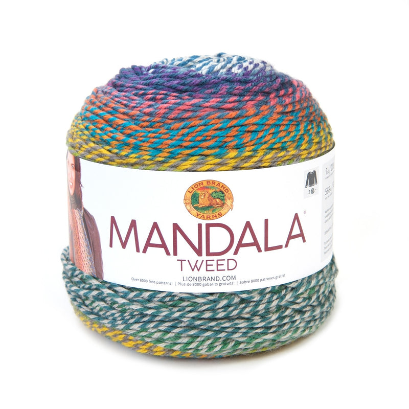 By cleverly twisting two ends of Mandala®, Mandala® Tweed has twice the number of colors, with a tweedy self-striping effect. This magical yarn is the same soft fiber as Mandala® at a slightly heavier weight. The 200 gram cakes have 568 yards, which is enough yarn for you to knit or crochet magical accessories and baby blankets using only one cake. But we know you won’t be able to stop at just one, so make room in your stash for Mandala Tweed.