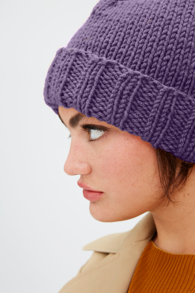 The Meghan's Hat - Version 1 is a knit hat pattern made with bulky weight yarn that has a skill level of easy.