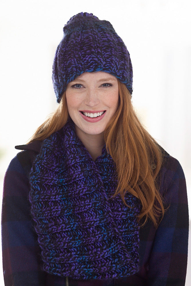 Hat Finished Circumference About 16 in. (40.5 cm), Hat will stretch to fit a range of sizes. Finished Height About 10 in. (25.5 cm). Cowl Finished Circumference About 28 in. (71 cm), slightly stretched. Finished Height About 8.5 in. (21.5 cm).