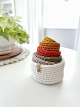 The Nesting Bowls, set of 6, make the perfect decor or storage piece, that can also be used as a toddler stacking toy. The baskets are flexible, yet sturdy, and can be made in an array of beautiful colors!