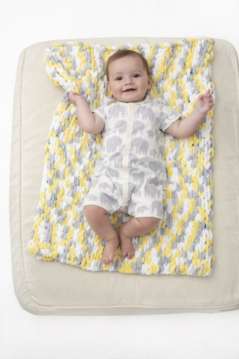 The No Needle Blankie is a crafts blankie pattern made with jumbo weight yarn that has a skill level of beginner.
