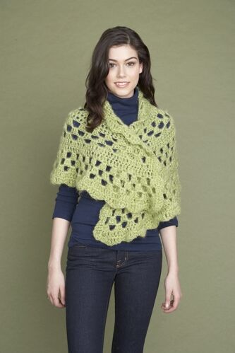 The One Ball Half Moon Shawl is a crochet shawl pattern made with super bulky weight yarn that has a skill level of easy.