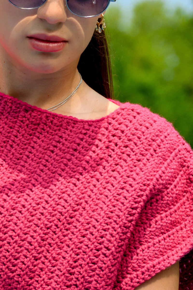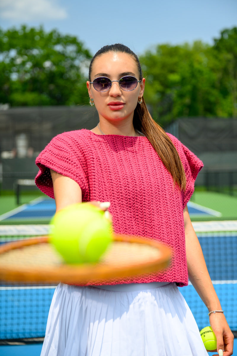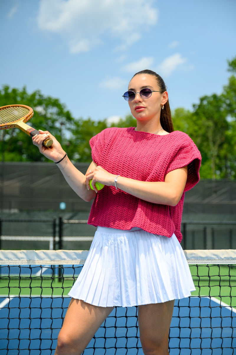 The Orchard Beach Top is a sporty chic crochet piece made with soft Pound of Love yarn, perfect for beginners. Its easy pattern lets you create a stylish, comfortable top ideal for layering over your swimsuit on beach days or adding flair to your next tennis match. Embrace effortless style and comfort with this versatile, handmade favorite.