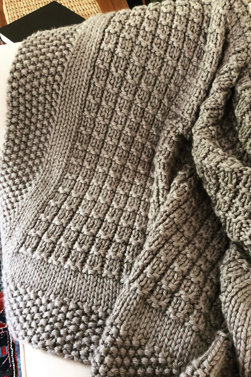 Over the Rooftops blanket is fun to knit with super bulky #6 weight yarn and big knitting needles. This cozy blanket has lots of chunky texture and a seed stitch border. It's easy to knit for a confident knitter using only knit and purl stitches. The name for the Over the Rooftops blanket knitting pattern is inspired by the words in “Step in Time”…a song from one of my favorite movies Mary Poppins. The PDF pattern includes instructions for five (5) blanket sizes: Baby Blanket, Small Blanket, Medium Throw, Large Throw, XL Afghan.