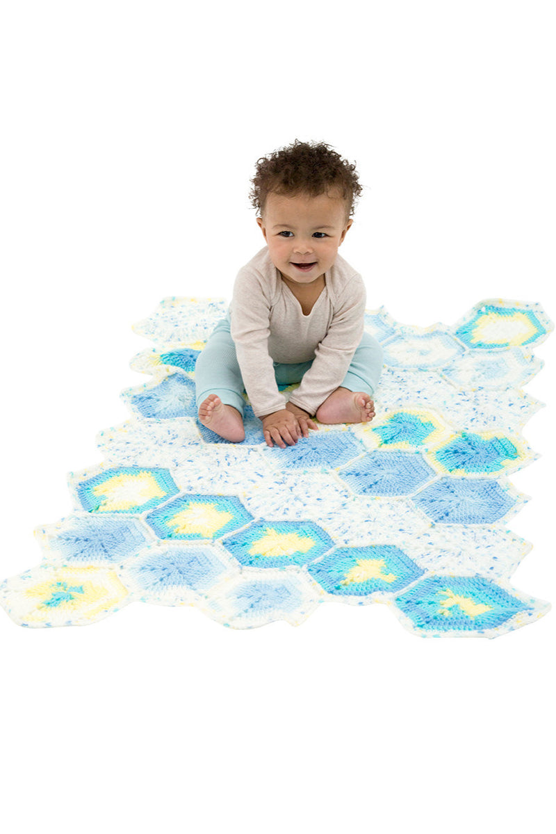 The Park Slope Hexagon Afghan is a crochet afghan pattern made with light weight yarn that has a skill level of easy.