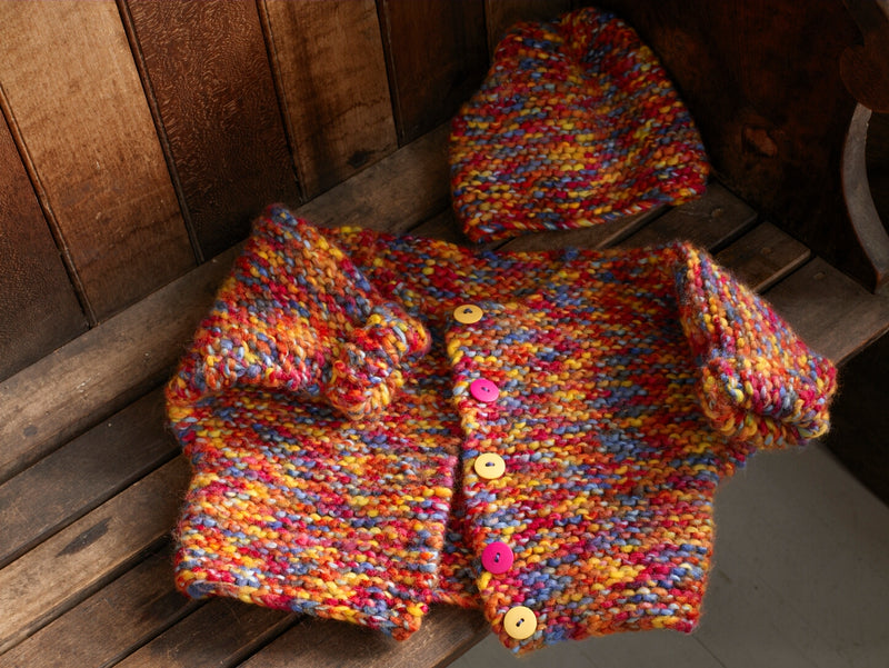 SweaterFinished Chest 21 1/2 (22 1/2, 24) in. [54.5 (57, 61) cm]Length 12 (12 1/2, 13) in. [30.5 (32, 33) cm]HatCircumference 16 (17 1/4, 18 3/4) in. [40.5 (44, 47.5) cm]